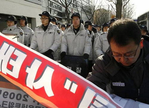 首爾當(dāng)?shù)?3日中午,數(shù)十名雙龍工會(huì)及一些市民團(tuán)體成員圍堵在中國(guó)大使館門(mén)前示威,在近兩個(gè)小時(shí)的抗議過(guò)程中,示威者借助擴(kuò)音器不斷地喊“中國(guó)上汽應(yīng)做出賠償”、“上汽竊取雙龍汽車(chē)核心技術(shù)”等口號(hào),這些人的圍堵給使館人員進(jìn)出造成很大不便。多家韓國(guó)媒體也趕到抗議現(xiàn)場(chǎng)報(bào)道,紐西斯通訊社報(bào)道稱(chēng),參加示威的有雙龍工會(huì)等11個(gè)市民團(tuán)體成員。工會(huì)方面宣稱(chēng),由于上汽是中國(guó)國(guó)有企業(yè),中國(guó)政府也該為雙龍危機(jī)負(fù)責(zé)。而一些團(tuán)體指責(zé)“上汽偷竊雙龍技術(shù)是對(duì)數(shù)十萬(wàn)韓國(guó)工人的犯罪”,要求韓國(guó)政府追究上汽責(zé)任。