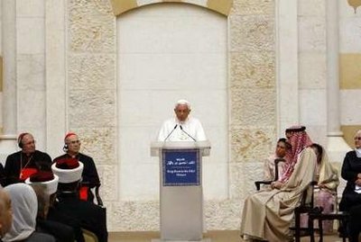 教皇其后到首都安曼最大的清真寺參觀,提到不少宗教紛爭背后受到政治操控,強(qiáng)調(diào)要與伊斯蘭教和諧共處。帶領(lǐng)教皇參觀的約旦王子加齊感謝教皇,就2006年發(fā)表傷害伊斯蘭教言論,表達(dá)遺憾。