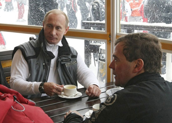 中新網(wǎng)1月4日電 綜合報(bào)道,俄總統(tǒng)梅德韋杰夫和總理普京3日一起在俄羅斯南部度假勝地索契的波利亞納滑雪場(chǎng)過新年。兩人在一起飲茶后,梅德韋杰夫起身結(jié)賬,普京緊跟在后,并未準(zhǔn)備買單。普京表示:“無論買什么東西都是總統(tǒng)付錢。” 梅德韋杰夫則“大方”回應(yīng):“付賬是我的工作。”