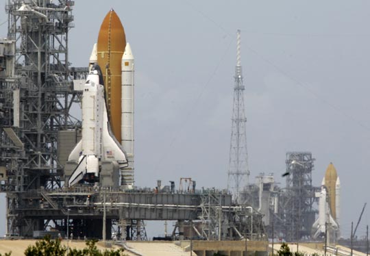 但另一艘航天飛機奮進號 (Endeavour)18日也移入39B發射臺,距離亞特蘭提斯號準備升空的39A發射臺不過3公里多;NASA表示,奮進號的所有準備作業都與正式發射作業無異,即使它從事救援任務的可能性并不高。報道說這是太空史上的首次。