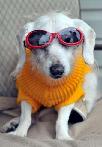 據香港《大公報》報道稱,臘腸犬香奈爾身穿黃色毛衣、戴著紅框太陽眼鏡。它的主人丹尼斯替它接受了這一殊榮。香奈爾曾是紐約的一只救援犬。