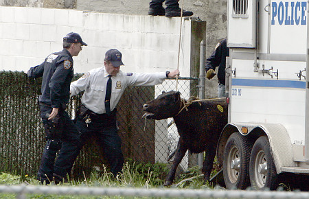 “中央社”援引美國媒體報道,這只叫做莫莉(Molly)的母牛6日逃過劊子手屠刀,和警察、屠夫在紐約皇后區附近上演一場人牛追逐大戰。