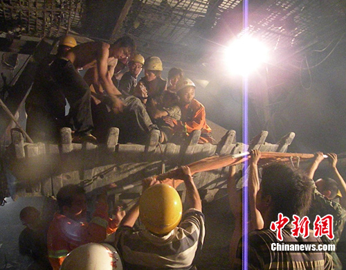 凌晨5時許,消防官兵抵達現(xiàn)場,發(fā)現(xiàn)隧道施工場地盡頭,幾塊巨大的山石垮塌,將支撐的橫梁壓彎變形,一工人因逃離不及時,左腳被壓在橫梁與山石之間無法動彈,加之隧道通風(fēng)不好,山體還有繼續(xù)垮塌的可能,兩臺重型挖掘機因支撐山體產(chǎn)生的廢氣十分嗆人,對開展?fàn)I救十分不利。