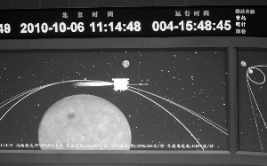 昨天上午11時06分,北京航天飛行控制中心調度地面測控系統,向嫦娥二號發出指令,衛星發動機準時點火,工作約32分鐘后,正常關機。根據實時遙外測數據監視判斷,衛星順利進入周期約為12小時的橢圓環月軌道。
