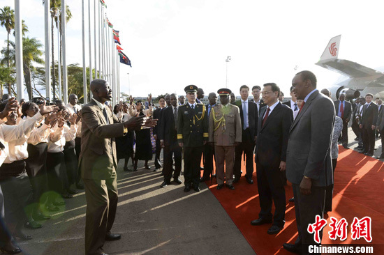 離開肯尼亞時(shí),肯尼亞總統(tǒng)肯雅塔夫婦和副總統(tǒng)魯托到機(jī)場送行,機(jī)場舉行了隆重的歡送儀式。