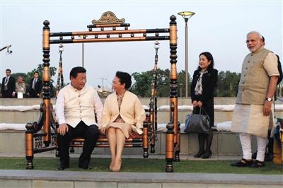 9月17日,印度古吉拉特邦,習(xí)近平和彭麗媛一起蕩秋千。