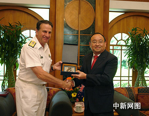 中新網湛江10月19日電(梁盛 鄧麗娜)新西蘭海軍“特卡哈” (Te Kaha)號導彈護衛艦十九日上午抵達中國海軍湛江軍港進行友好訪問。在新西蘭聯合部隊司令部海上部隊司令大衛•安森準將的率領下,“特卡哈”號護衛艦艦長安德魯•格蘭特中校等主要軍官一同拜會了湛江市市長陳耀光。新西蘭駐廣州總領事楊安廉也出席了這次見面會。