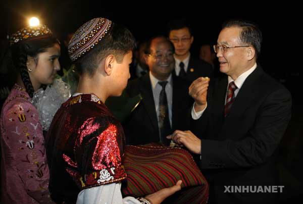 會談前,別爾德穆哈梅多夫在總統府外廣場為溫家寶總理來訪舉行隆重歡迎儀式。
