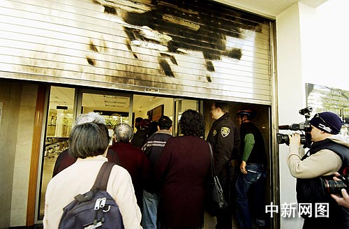 警察局和消防局的人員即刻趕到現(xiàn)場,發(fā)現(xiàn)縱火事件發(fā)生在位于蓋瑞大街的簽證廳門口,座落在相鄰的拉古拉大街的領(lǐng)館正門沒有受到破壞,也沒有人員傷亡。