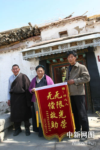 今天中午,來自云南昭通水富縣向家壩的進藏種菜工稅代超捧著一面繡有“無限光榮,無償救助”的錦旗,走進了這個曾是他生命庇護所的普通藏家小院,向兩位老人深深地鞠了一躬。