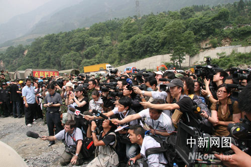 快訊:中國(guó)總理溫家寶在映秀接受中外記者采訪