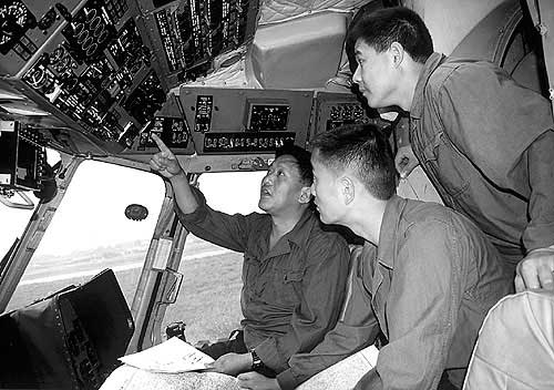 機長邱光華,51歲,羌族,四川茂縣人。 1957年4月出生,1974年4月入伍,1976年6月入黨,大專文化,大校軍銜,四種氣象飛行指揮員、副師職特級飛行員,近年多次執行軍事演習、衛星回收和搶險救災等重大任務,總飛行時間5800多小時,榮立二等功2次,三等功4次。