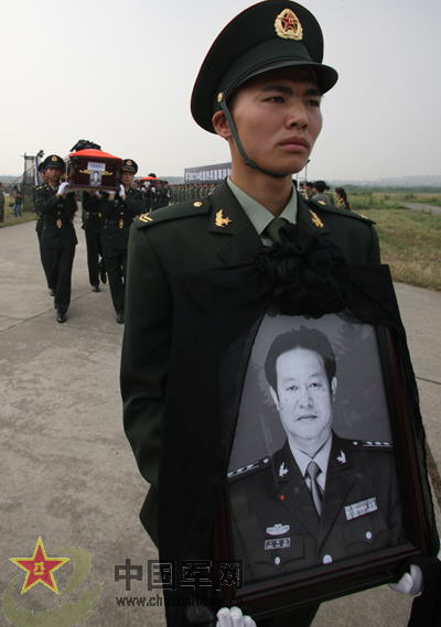 今天上午10時(shí)30分,運(yùn)送失事直升機(jī)機(jī)組成員靈柩的汽車,緩緩駛進(jìn)某陸航團(tuán)鳳凰山機(jī)場。迎送烈士靈柩儀式正式開始。