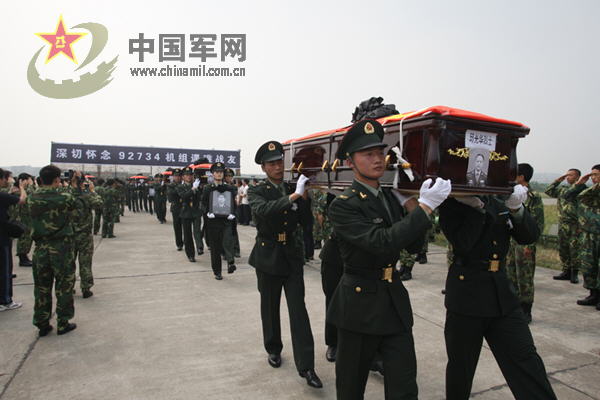 今天上午10時(shí)30分,運(yùn)送失事直升機(jī)機(jī)組成員靈柩的汽車,緩緩駛進(jìn)某陸航團(tuán)鳳凰山機(jī)場。迎送烈士靈柩儀式正式開始。(圖片來源:中國軍網(wǎng);周朝榮/攝)