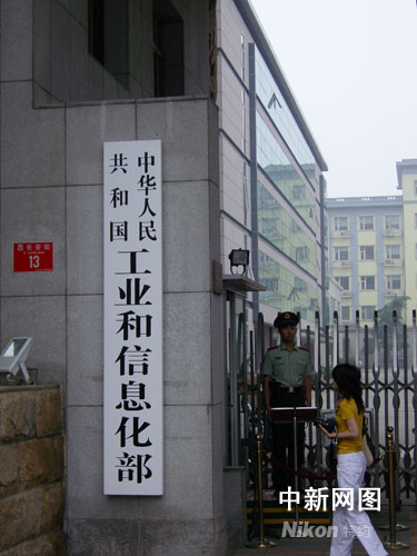 上午十時(shí),在位于西單圖書(shū)大廈東側(cè)原信產(chǎn)部辦公所在地,印有“中華人民共和國(guó)工業(yè)和信息化部”的牌匾替代了原先的信產(chǎn)部牌匾。