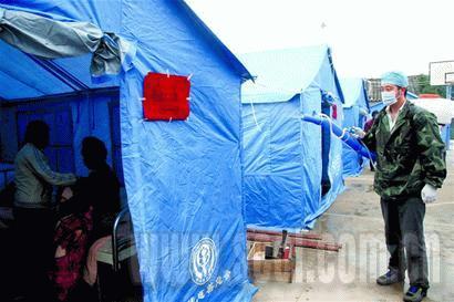 記者在地震受災最嚴重的會理縣黎溪區的當地縣級醫院——會南醫院看到,醫院房屋受損非常嚴重,很多房屋成為危房,醫療地點臨時搭建在附近小學校園里。