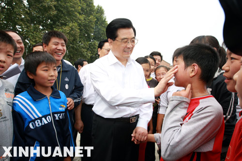 胡錦濤在焦作市博愛縣清化鎮(zhèn)高廟中學看望該校師生。 新華社記者鞠鵬攝