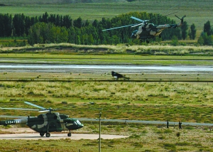 昨日,直升機起飛參加“神七”主著陸場搜救演習。 郭超 攝
