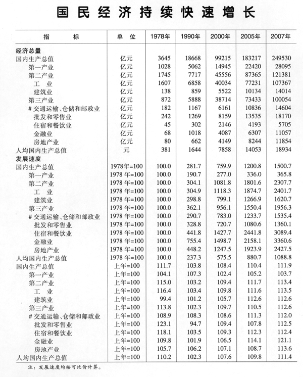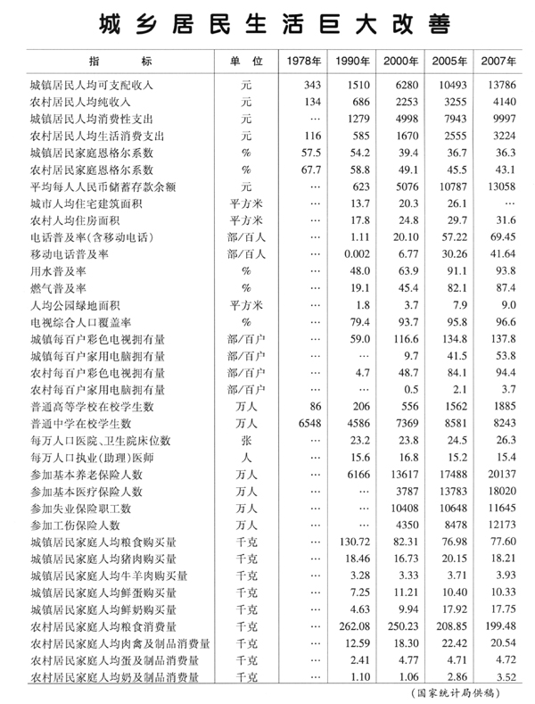 中國30年改革開放成就統計表