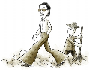 喇叭褲再上街掃地,我就要下崗了。 新京報(bào)插圖/許英劍