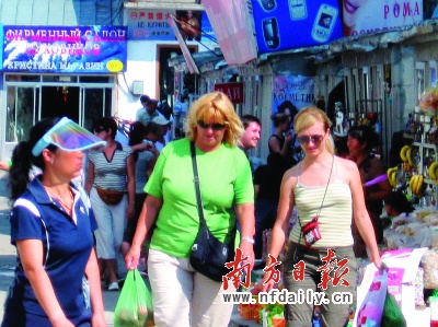 眼下,俄羅斯游客來撫遠即時享受者居多。俄方規定每個俄國人回境不能帶超過35公斤的物品,為此,他們在撫遠盡情即時享受中國菜、中國酒,回境時盡量把買的衣服套滿全身。