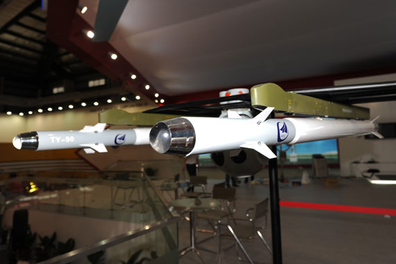 中航工業此次航展擺設了專門的航空武器展臺,其中TY-90空空導彈的出現堪稱一大亮點,它不僅能裝備武直進行空中打擊,也能與無人機結合成察打一體機組合,強化我國無人平臺的空中優勢。