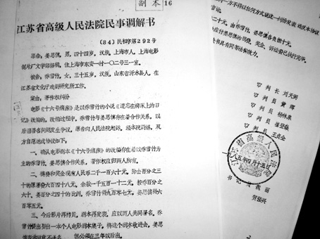 24年前,1984年4月,因為作品合作而引發(fā)的電影故事片《十六號病房》編劇署名之爭,在雙方“筆墨官司”糾纏了八九個月之后,上海電影制片廠文學部編輯姜思慎以侵犯著作權之訴,將小說《遺忘在病床上的日記》的原著作者喬雪竹告上了法庭。該案成為我國建國以來首例著作權糾紛案,一時引起了中外輿論的高度關注。