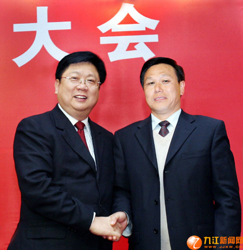 會上,弘強代表省委宣布:鐘利貴同志任九江市委委員、常委、書記,陳安眾不再擔任九江市委書記、常委、委員職務。