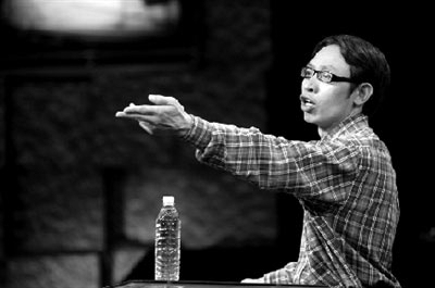 資料圖:先跑老師范美忠接受媒體采訪。圖片來源:京華時報;記者:張沫 攝