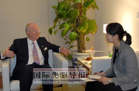 國(guó)際先驅(qū)導(dǎo)報(bào)記者熊爭(zhēng)艷發(fā)自北京 在美國(guó)駐華使館官員陪同下,經(jīng)過(guò)幾道關(guān)卡,在新使館大樓的會(huì)客室內(nèi)才見(jiàn)到了兩鬢斑白、神采奕奕的雷德大使。不到半個(gè)小時(shí)的采訪中,雷德思路清晰,語(yǔ)言幽默,并時(shí)常發(fā)出爽朗的笑聲。