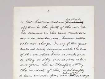 嘉士德拍賣行估計(jì)該手跡會拍出300-400萬美元,打破林肯個人文稿2002年創(chuàng)造的310萬美元記錄。嘉士德拍賣行認(rèn)為,現(xiàn)在林肯熱再次升溫多是因奧巴馬的緣故,因?yàn)閵W巴馬在總統(tǒng)競選中常常提到林肯。(梁小逸報(bào)道)