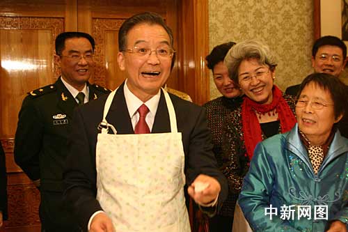 當地時間二月一日中午,正在英國訪問的中國總理溫家寶來到中國駐英大使館看望外交人員和華僑華人。他和大家一起包餃子,還風趣地說自己包餃子的手藝很不錯。中新社記者 張朔攝
