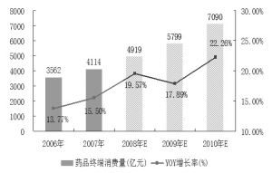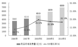 她表示,如果按藥品消費占50%計算,藥品市場將增加1666億元的費用供給。隨著醫改的逐步推進,未來政府在醫療保障方面的剛性支出將逐年加大,即使在宏觀經濟周期性回落的情況下也能支撐居民醫療保健消費的增長,并從而帶動藥品消費的增長。