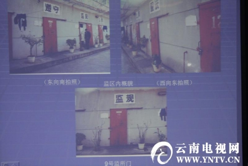 在今天上午的通報會上,晉寧縣公安局進行了通報情況,死者李喬明,25歲,白族,死亡原因是因為同監舍在放風時候玩游戲,因為在游戲時發生口角,其中一名踢了死者一腳,導致撞在鐵柱上,導致頭部受傷致死。晉寧縣公安局制作事件發生地點圖片,提供給調查團一行。(來源:云南電視網)