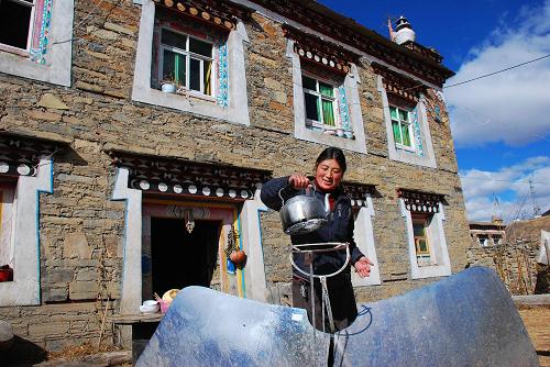 位于四川省甘孜藏族自治州康定縣的塔公鄉牧民新村,臨近公路干線,交通便利,兩層的新建藏式小樓、通村的平坦公路、太陽灶和配套電力設施,讓50多戶定居在這里的牧民們生活十分愜意。