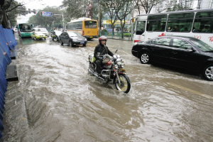 “好大的水喲!”昨日下午2點左右,河運校車站旁施工處,一主水管爆裂,自來水如清泉般流出,爆管旁2米處便是馬路,路面隨即被水淹沒,公路路面的積水達到2厘米左右。過往行人只得繞行,石油路開往石橋鋪的車輛緩堵前行,交警迅速到現場指揮維持秩序。