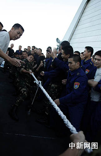 中新網“海口”艦3月19日電 (記者 孫自法) 3月中旬,為豐富廣大護航官兵業余生活,中國海軍艦艇編隊“海口”號導彈驅逐艦在護航之余組織舉辦第二屆甲板運動會,艦上官兵積極參與,各類比賽、訓練項目精彩紛呈。編隊三亞起航遠赴亞丁灣、索馬里海域執行護航任務近三個月來,廣大護航官兵身心狀態良好、士氣昂揚。