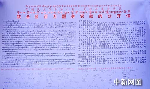 中新網拉薩3月27日電(記者柳俊武)3月28日,西藏各族民眾將迎來首個“百萬農奴解放紀念日”,西藏自治區也將在拉薩隆重紀念西藏民主改革50周年。27日晚,西藏民主改革第一村——山南地區克松居委會居民,懷著激動的心情,向中新社、中新網寄來了他們致全區百萬翻身農奴的一封公開信。全文如下: