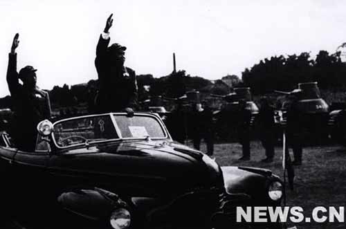 這次閱兵,按閱兵式和分列式兩類程序進行,閱兵式在靜止狀態下進行,分列式在行進狀態下進行。閱兵式歷時兩個半小時。開國大典閱兵,以步兵、騎兵為主,有火炮119門,坦克和裝甲車152輛,汽車222輛,飛機17架,軍馬2344匹。海軍只有一個方隊,空軍只有17架飛機,1.64萬名受閱官兵中,技術兵只占3%。那時,中國人民解放軍絕大多數是步兵。整個閱兵歷時兩個半小時。