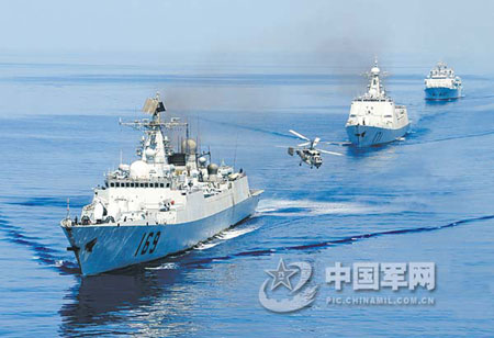 2008年12月26日,由南海艦隊3艘現(xiàn)代化戰(zhàn)艦組成的中國海軍首批赴亞丁灣、索馬里海域護(hù)航編隊,滿載著13億中國人民的深情關(guān)注,犁開了人民海軍遠(yuǎn)洋護(hù)航的新航跡,開啟了中國海軍走向深藍(lán)的新征程,奏響了構(gòu)建“和諧海洋”的新樂章。