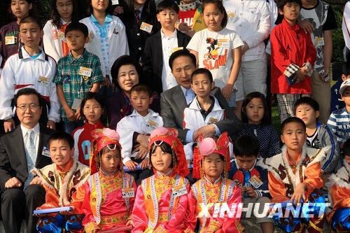 不一會(huì)兒,李明博總統(tǒng)攜夫人金潤(rùn)玉一起走來,孩子們迎上前去。李明博一眼就認(rèn)出了他在大地震發(fā)生后不久訪問四川時(shí)曾抱過的魏月濠小朋友。李明博撫摸著魏月濠的頭,親切地說:“長(zhǎng)大了不少。”