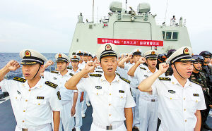 宣誓后,編隊指揮員、東海艦隊副司令員王志國代表全體官兵表示:“要以實際行動,為維護國家利益貢獻力量!為人民軍隊添光彩!為偉大祖國爭榮譽!”