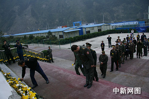 經(jīng)過簡(jiǎn)單的接洽,武官們直接來到汶川縣漩口中學(xué)地震遺址,用軍禮向汶川大地震中的遇難者和英勇犧牲的烈士用表示崇高的敬意和深深的哀悼。在參觀遺址的過程中,軍官們紛紛用相機(jī)記錄著漩口中學(xué)的原貌,談?wù)撝氪?zāi)后恢復(fù)重建的驚人速度。其中一位武官用還算流利的普通話說:“汶川的映秀非常漂亮!建設(shè)得太好、太快了!”