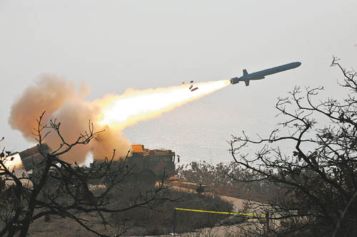 遼東海岸一個偏僻的山坳里,隨著指揮員“5、4、3、2、1、發(fā)射!”一連串指令的發(fā)出,某新型導(dǎo)彈噴射著烈焰撕破海空,撲向數(shù)百公里外的“敵艦”。