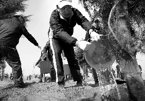 昨日上午,來自中共中央直屬機關和中央國家機關各部委、單位的168名部級領導,在北京市房山區長陽鎮南水北調中線植樹工地,參加了共和國部長義務植樹活動。