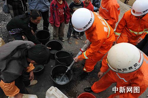 在貴州受旱最嚴重的黔西南州,已經240多日無雨可降。從今年農歷新年起,興義市所在的黔西南布依族苗族自治州消防官兵就開始為當地受旱鄉鎮送水。截止3月27日,他們共出動消防車輛360輛次,行程10000多公里,為當地104個行政村送水2280多噸,解決了20萬人次的生活飲水困難。
