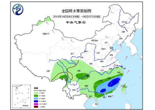 6日08時至7日08時,北疆北部、西藏東部、青海東南部、甘肅南部、川西高原等地有小雪(雨)或雨夾雪;陜西南部、湖北南部、江南、華南大部、西南地區東部、云南西北部和東部等地有小到中雨或陣雨,其中,江南南部及廣東中北部有大雨,局地暴雨;廣西東北部的部分地區有中到大雨。新疆北部、內蒙古大部、西北地區北部、東北、黃淮東部等地有4~5級風。黃海南部海域、東海大部海域、臺灣海峽、臺灣以東洋面將有6~7級、陣風8級的東北風。北部灣將有霧,能見度不足10公里。