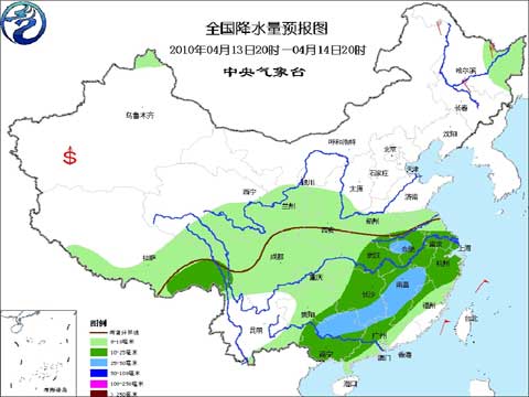 中新網4月13日電 中央氣象臺2010年4月13日17時發布未來三天全國天氣預報: