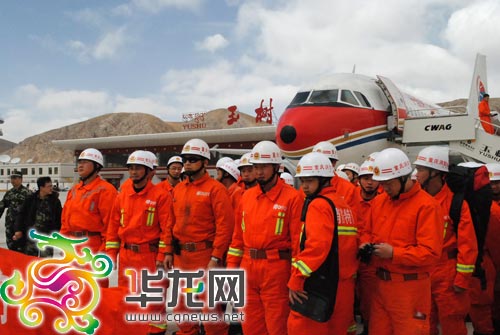 經過一個多小時的飛行,首批120名赴青海玉樹地震災區參加抗震救災的重慶救援隊隊員,于2010年4月15日14時45分,順利飛抵玉樹機場。