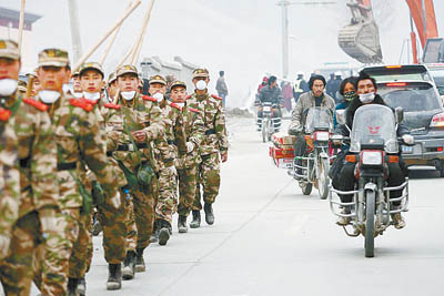 僅從外表看去,玉樹如今還沒有完全恢復秩序。人們很難找到過去熟悉的機構和店鋪。法院暫時關張了,檢察院也宣布“暫停辦理”。一個退休的老工人撥通銀行的電話,詢問自己的退休金為什么還沒發放,但在接電話的人看來,他真是有點太不識時務了。